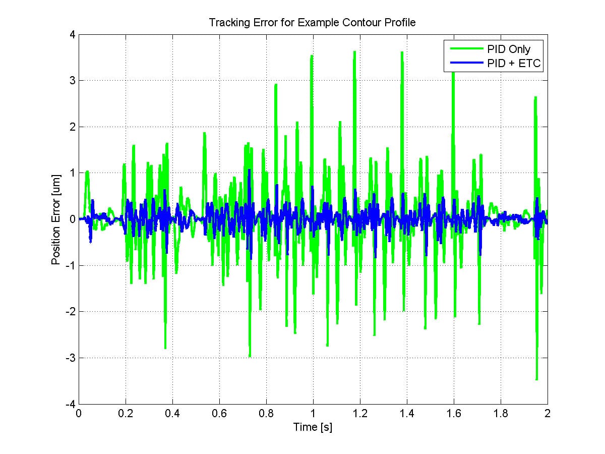 The Enhanced Tracking Control algorithm improves point-to-point positioning performance by eliminating the long tail associated with settling to sub-micron tolerances (Figure 2). Systems with rolling element bearings typically take a long time in the quasi-static condition when the rolling elements are almost, but not quite, in their final position. The higher loop gain of the servo at low frequencies provides the additional effort to push through the bearing friction when using the Enhanced Tracking Control algorithm.