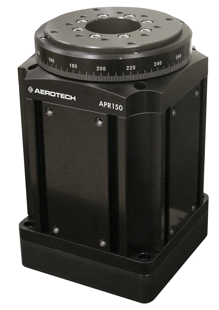 Sturdy stage construction and separated angular contact bearings result in large load capacity and high moment stiffness for the APR stages. The APRs can excel in applications where the rotation axis is parallel or perpendicular to gravity and the payload center of gravity is cantilevered away from the stage.