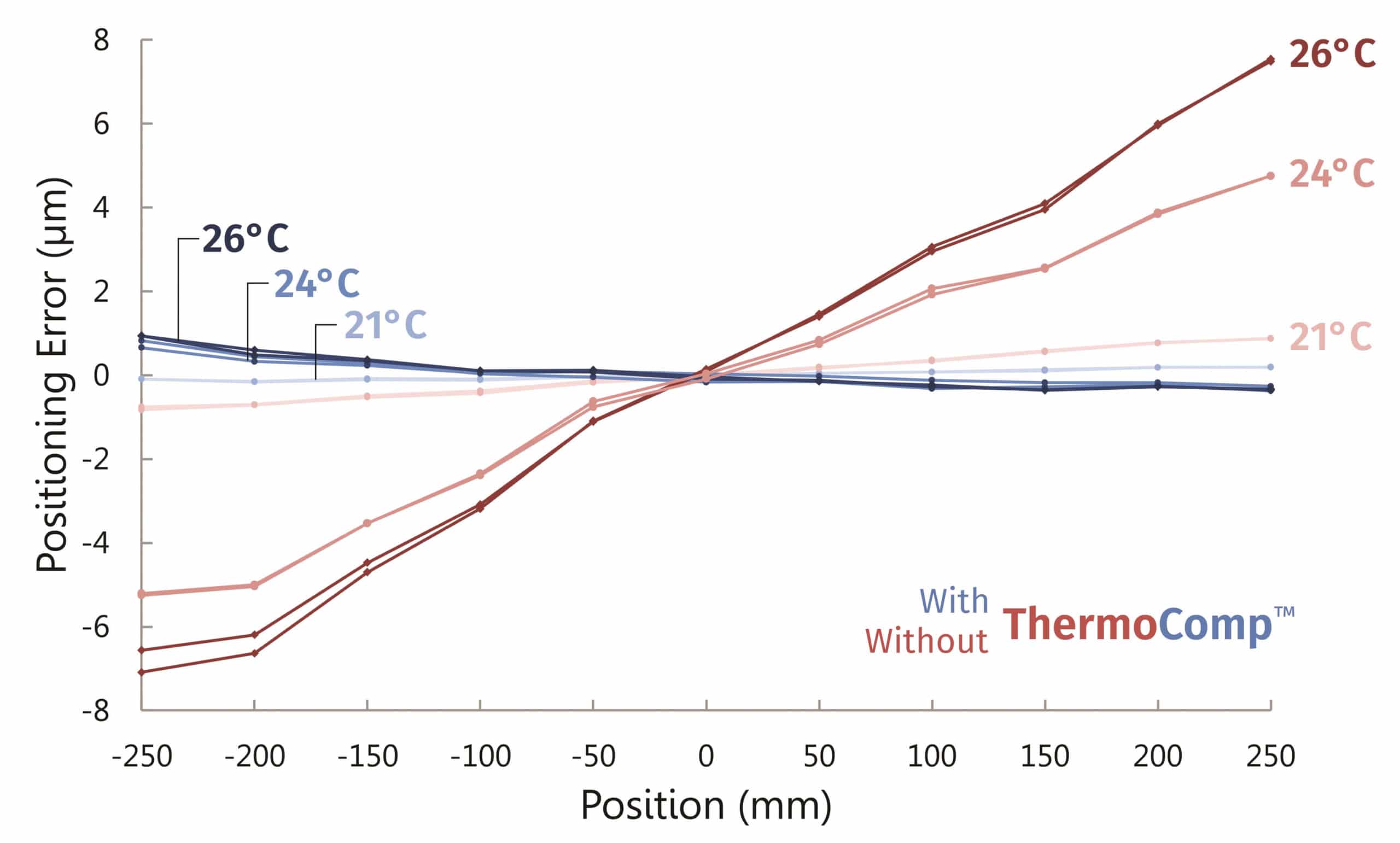 ThermoComp is currently available on all PRO Series stages, and operates through an intuitive and easy to use integrated command set within the Automation1 controller software. System setup is handled by the factory and is standard on every ThermoComp purchase, ensuring a hassle-free customer experience, and is available within Aerotech’s Order-to-Ship expedited delivery system. For more information about what ThermoComp can do to make your process less susceptible to thermal errors and improve your facility’s output quality, contact an Aerotech Applications Engineer today.